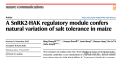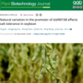 近日,Plant Biotechnology Journal在线发表了南京农业大学农学院、作物遗传与种质创新国家重点实验室、国家大豆改良中心创新团队的新研究成果“Natural variation in the promoter of GsERD15B affects salt tolerance in soybean”。该研究从野生大豆种质资源中鉴定到一个耐盐基因GsERD15B,在盐胁迫下,该基因启动子的7-bp缺失提高了其自身的表达量,并诱导与脱落酸信号传导、脯氨酸合成、离子转运等相关基因对盐胁迫的响应,从而增强大豆的耐盐性。盐胁迫是影响作物产量的主要非生物因素之一,而盐碱地面积逐年增加,威胁粮食安全。大